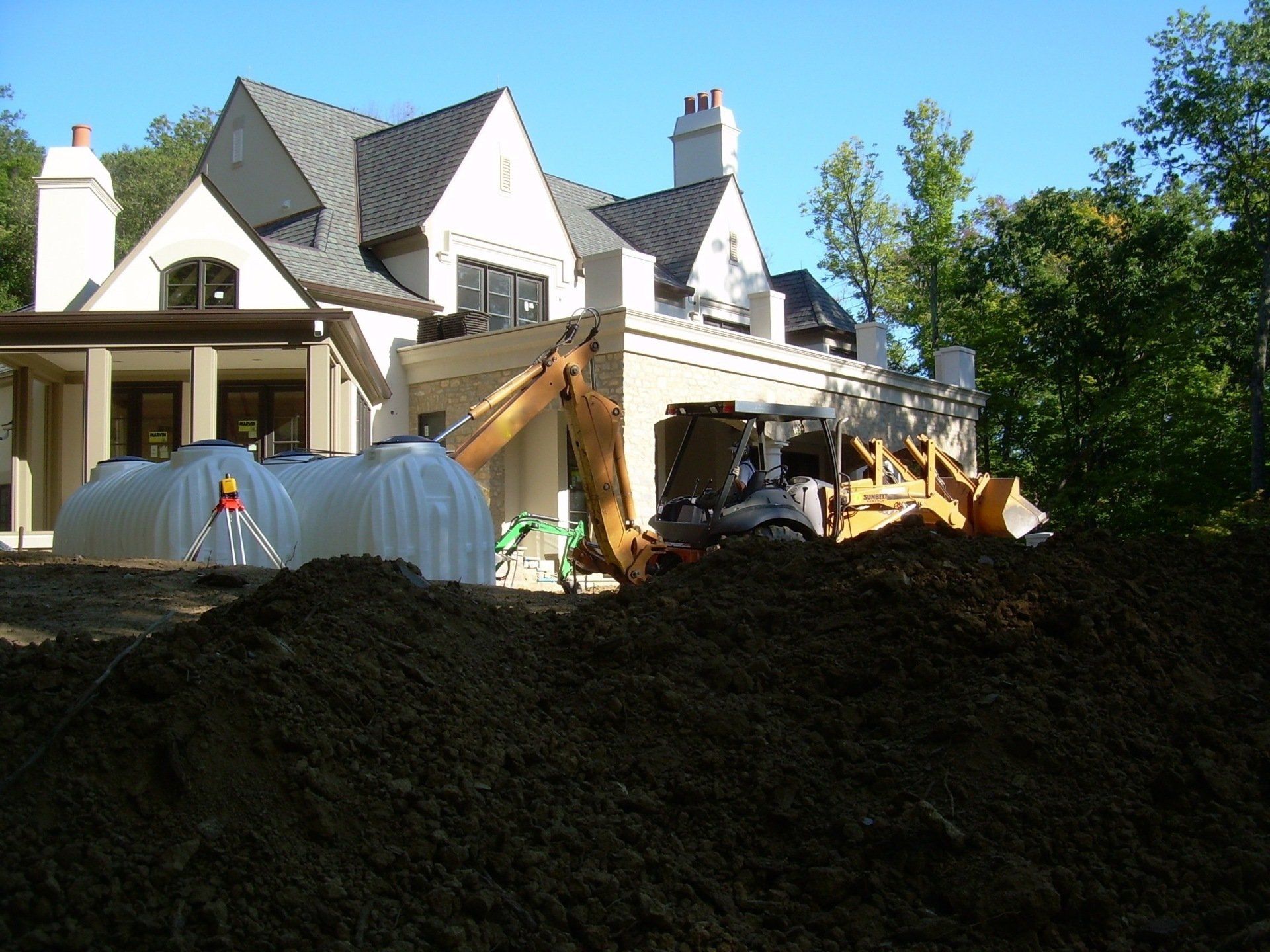 Site preparation for rainwater harvesting system designed and installed by Rain Brothers.