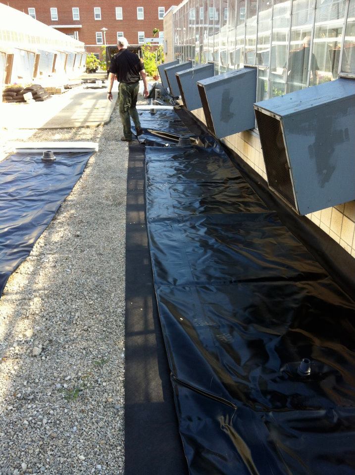 Flexible rainwater bladder tank installation for university greenhouse.