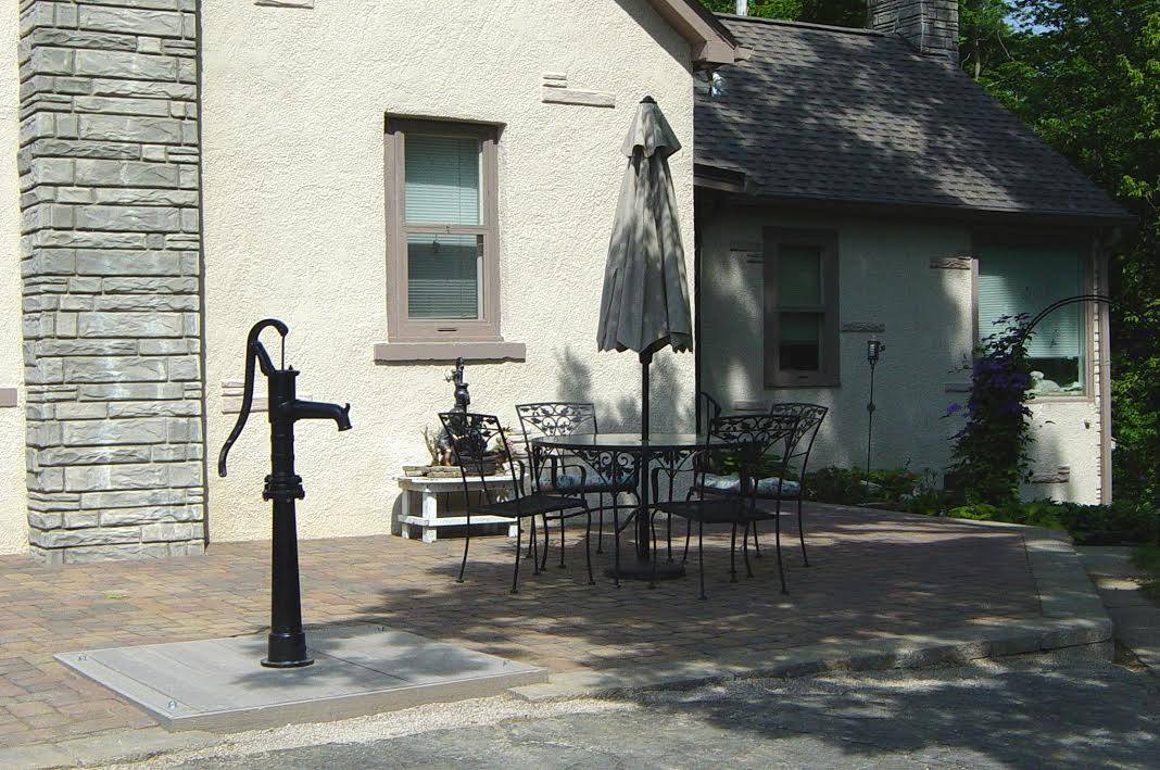 1725-Gallon Norwesco poly cistern installed for feed direct to frost-free hydrant. Columbus, OH
