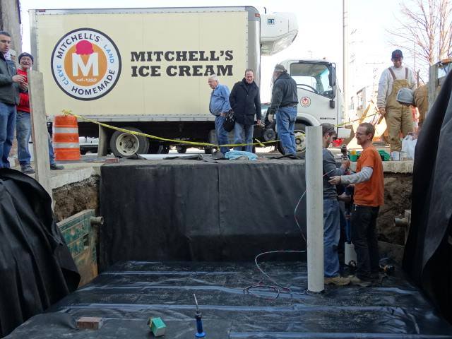 Mitchell's Ice Cream rain harvesting cistern - preparation for installation. Cleveland, Ohio.